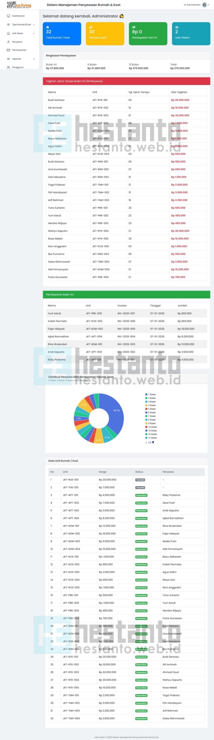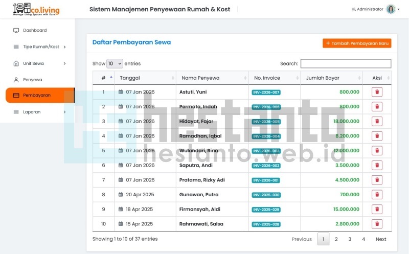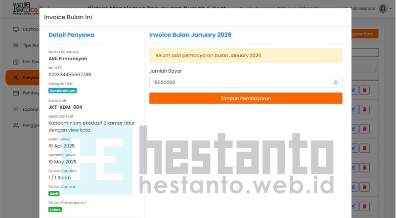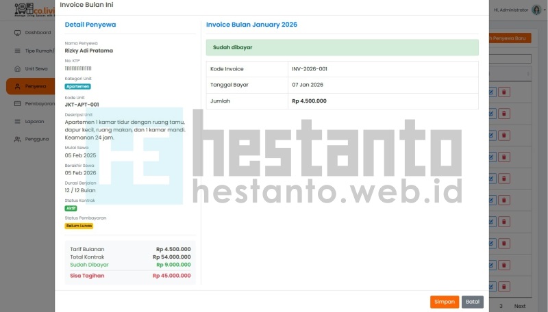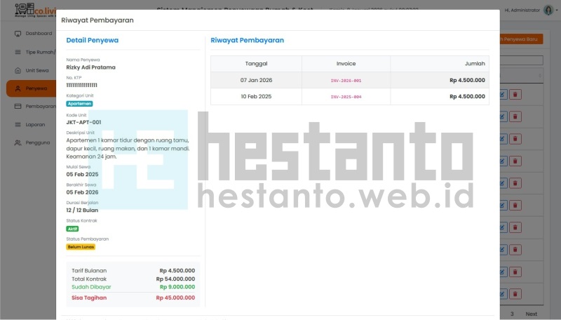 - Mengelola invoice atau tagihan penyewa.
