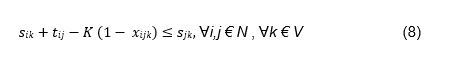 Batasan 5. Armada k tidak dapat datang ke pelangggan j sebelum waktu yang telah ditetapkan.